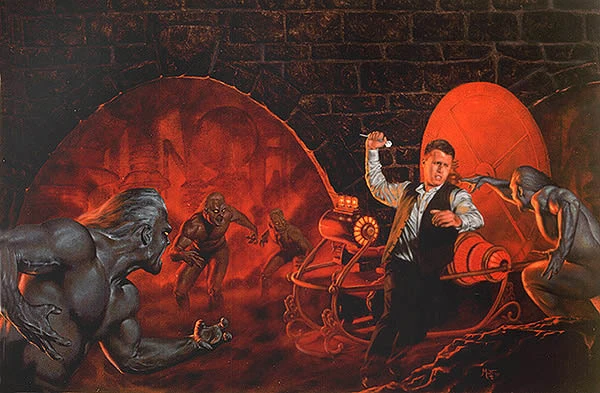 As the ride vehicles emerged from the Tunnel, guests found themselves in a far-future version of Texas, which indicators on their ride vehicles informed them was the year 802,701 AD. There, they encountered animatronic versions of the Eloi, an elf-like race of human descendants. The vehicles then entered a series of underground tunnels, where guests were surrounded by the hairy Morlocks who prey on the Eloi.
